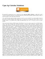 | File Name: Cpm Ap Calculus Solutions .pdf Size: 6334 KB Type: PDF, ePub, eBook |